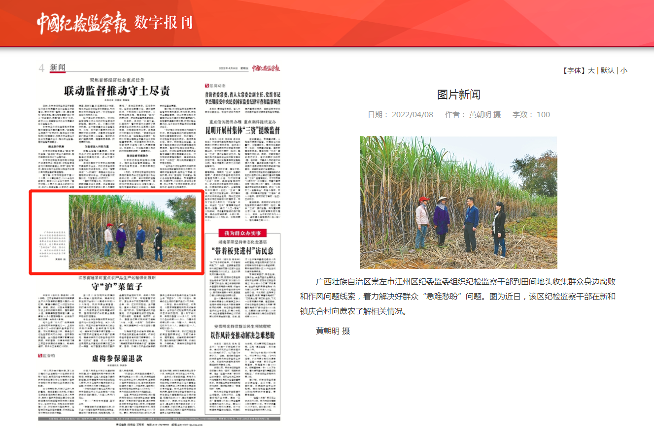 《中国纪检监察报》刊登江州区纪委监委开展监督检查图片新闻
