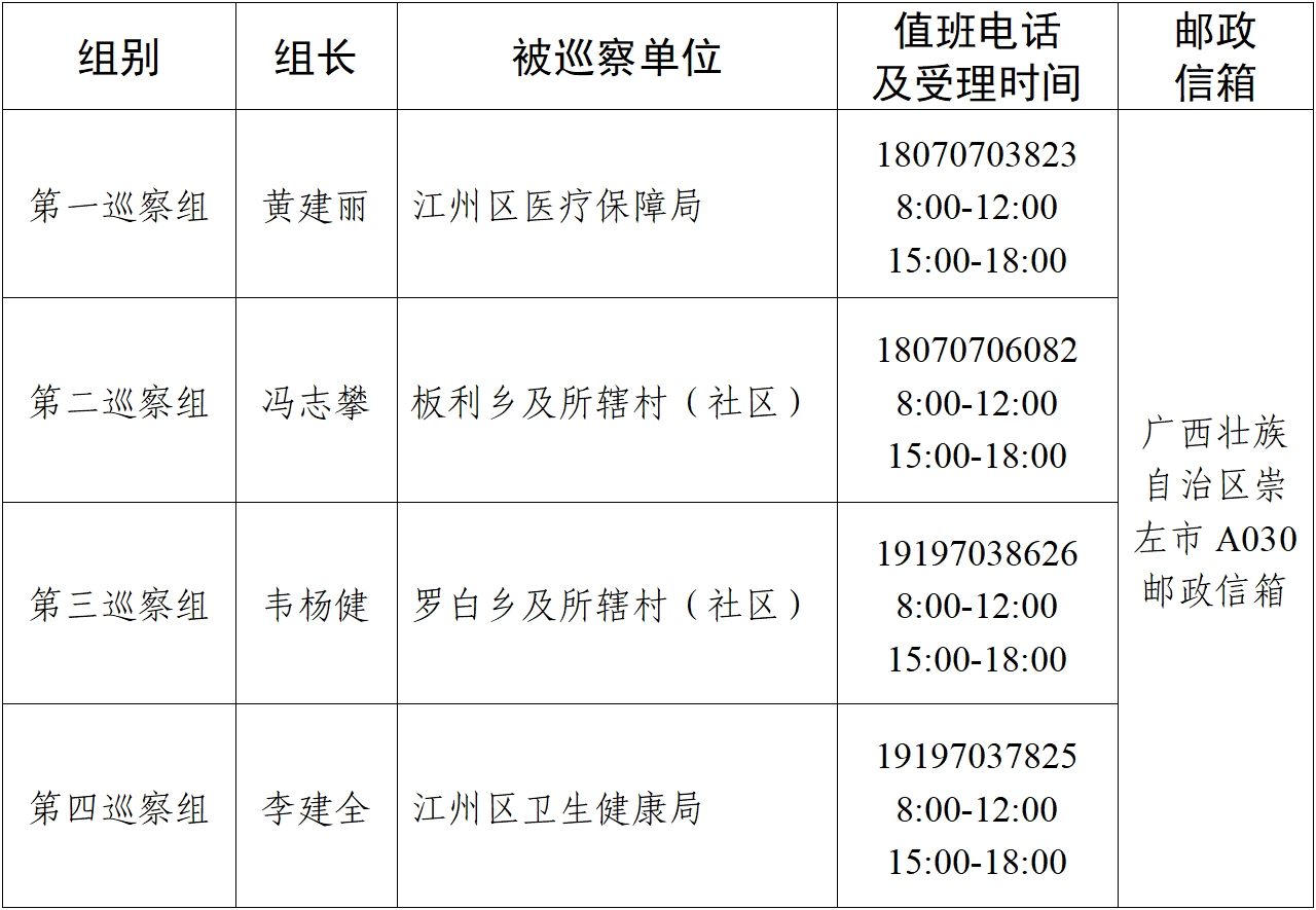 截至3月19日,五届江州区委第六轮巡察已完成进驻,江州区委各巡察组将利用3个月左右时间,分别对罗白乡、板利乡党委及所辖村(社区)党组织和江州区卫生健康局党组、医疗保障局党组等19家单位开展常规巡察。